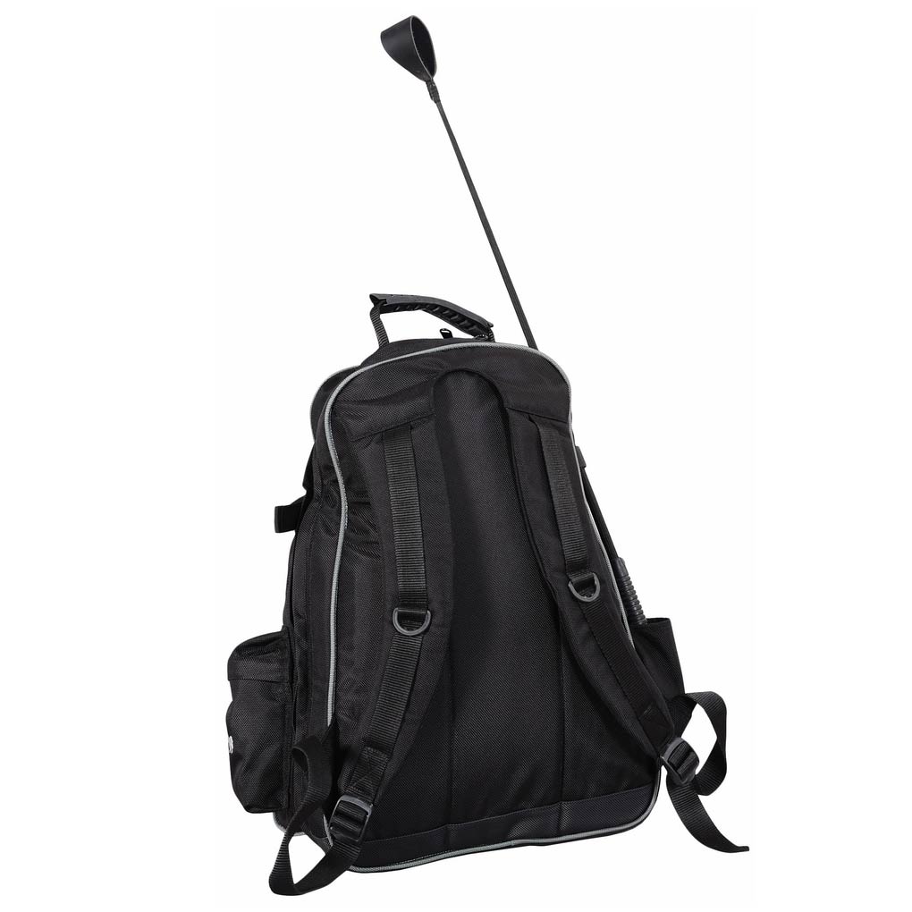 Designed for the on-the-go equestrian, this attractive backpack can accommodate all of your ring side needs. The Pro Back Pack by Equine Couture keeps everything organized and in one convenient, portable location. Water-resistant and featuring multiple specialized pockets, hard to carry items such as a helmet and crop can easily be tucked away and easily accessible.